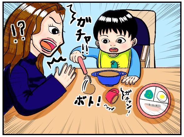 しかし、ご飯をすくっては机の上に落とすを繰り返すようなってしまいました💦