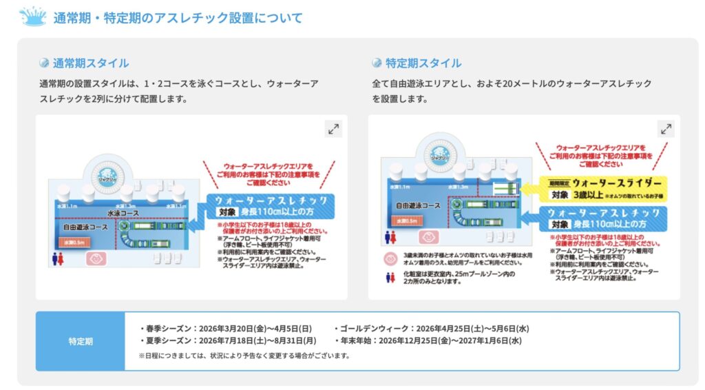 期間によって25mプールのエリアは変わります。