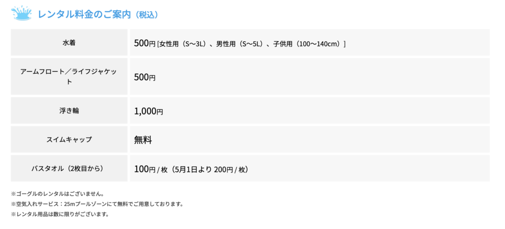 スイムキャップは無料で借りることができます。