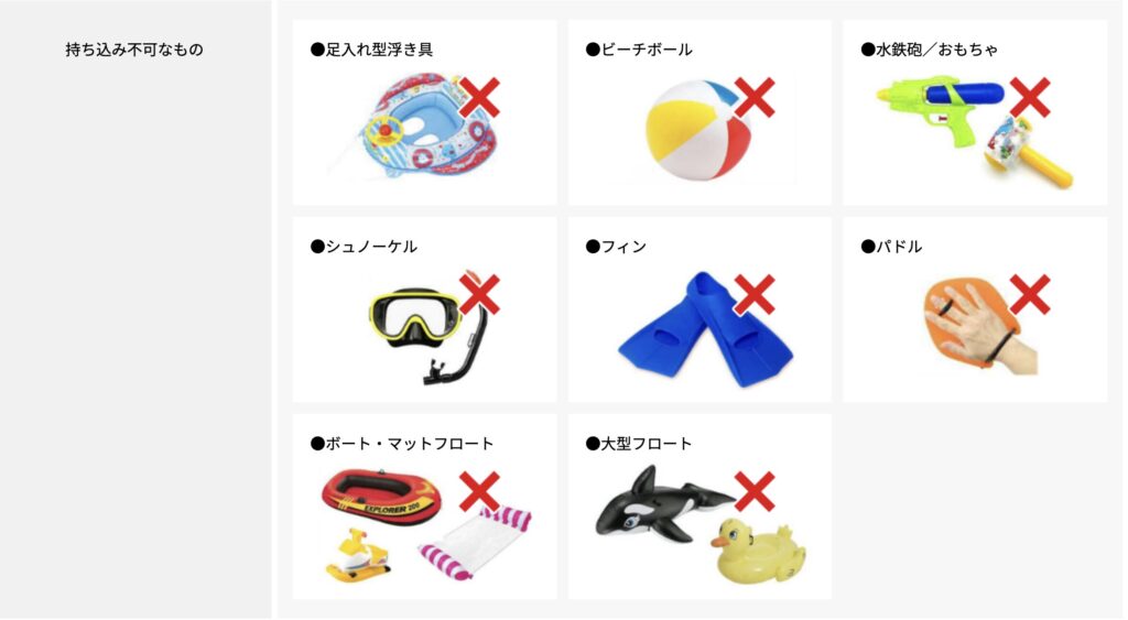 ご利用の際は下記の持ち物に注意してください。