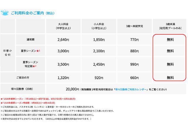 3歳未満は料金が無料です!