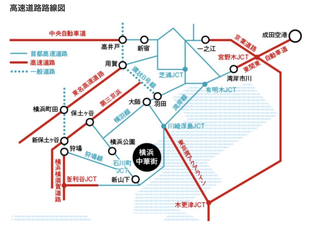 | 首都高速横羽線 横浜公園ランプから | 約3分 |