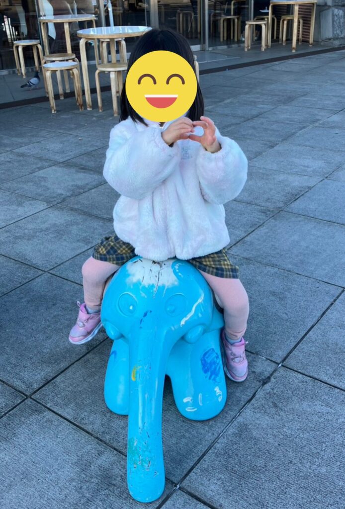 また、象の置物が2つあり、子供が背中に乗るには丁度良いサイズで長女が